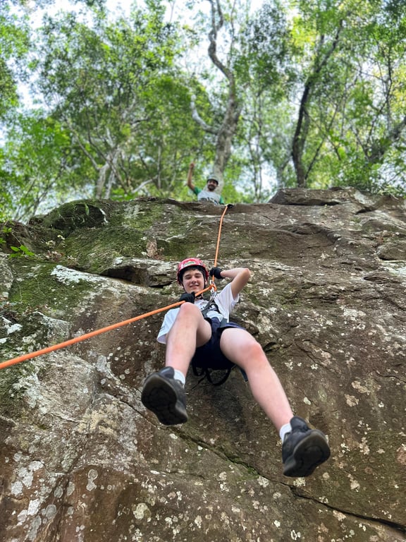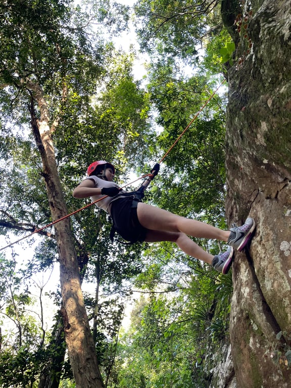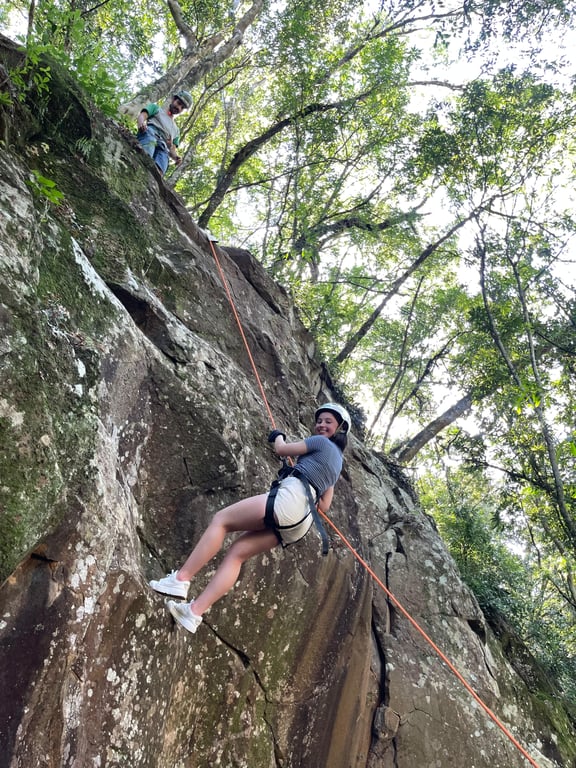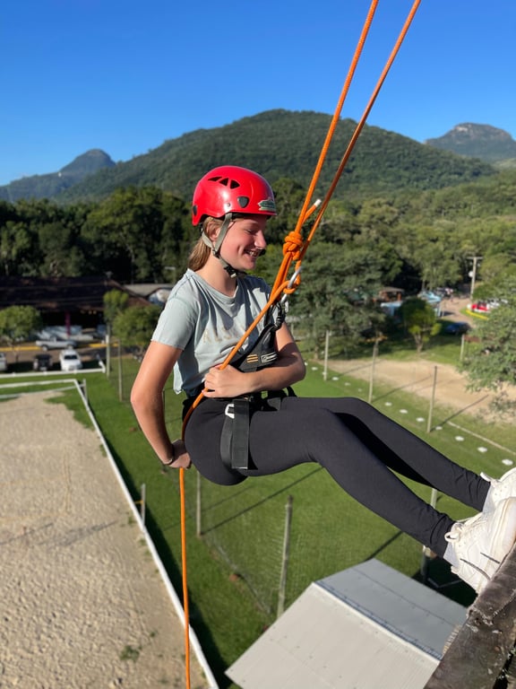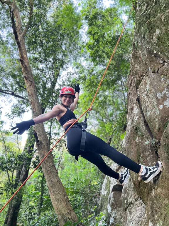 Rapel o desafio consiste na descida de um paredão rochoso, com 12 metros de altura e vista única das belezas naturais que rodeiam o parque.